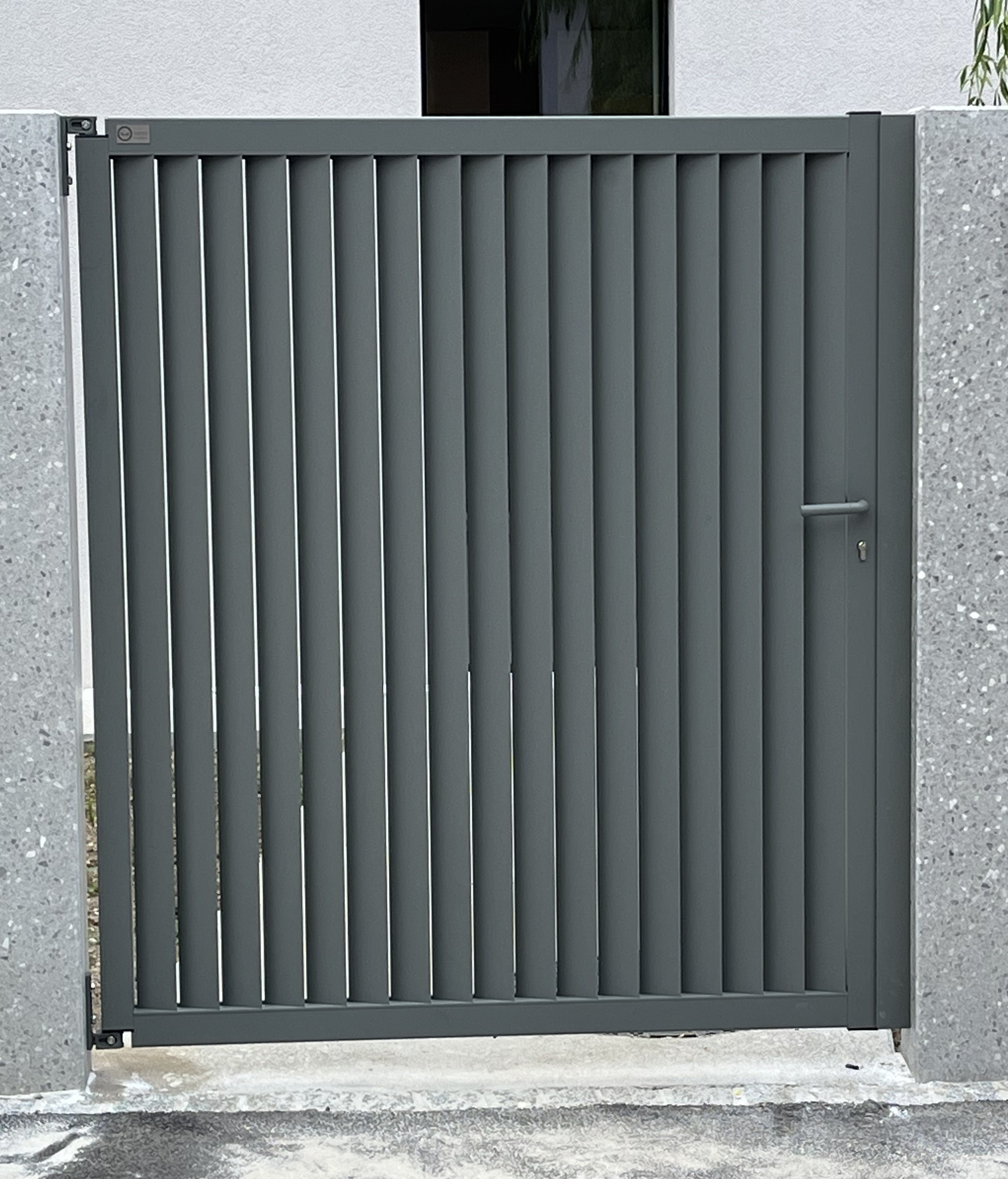 Ogrodje kljuke je izdelano iz aluminija in je pobarvano v enako barvo kot so vrata. .