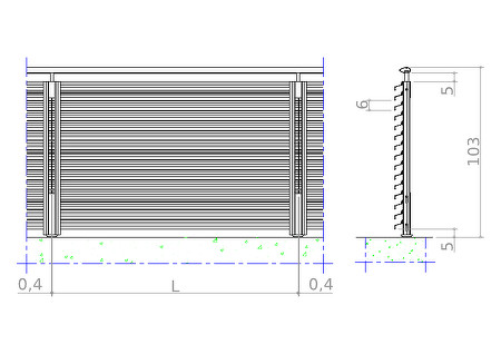 Ograja je sestavljena iz vodoravnih aluminijskih letev s profilom »Z« višine 55 mm, debeline 50 mm. Oblika »Z« profila omogoča lomljenje svetlobe. S tem na ograji omogočamo igro svetlobe in senc oziroma igro različnih barv. Zgoraj je zaključena z ročajem izdelanim iz najkvalitetnejše ALU zlitine ter dodatno zaščitenim z barvo kovinskega videza.