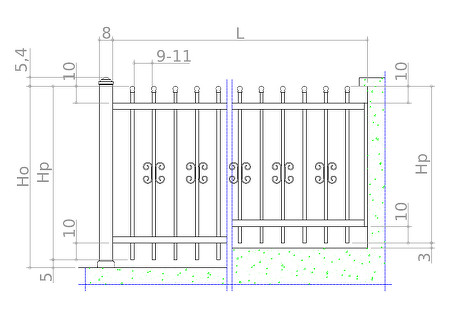 Ograjni stebri so kvadratni profili dimenzije 8 x 8 cm, zgoraj zaprti ali s polkroglo ali ravno kapo.