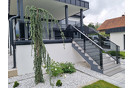 Zgoraj je zaključena z ročajem izdelanim iz najkvalitetnejše ALU zlitine ter dodatno zaščiten z barvo kovinskega videza. Ograja se montira direktno na čelo balkona.
