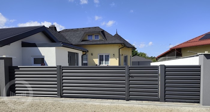 Ograja je sestavljena iz vodoravnih aluminijskih letev s profilom »S« višine 145 mm, debeline 30 mm.