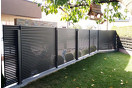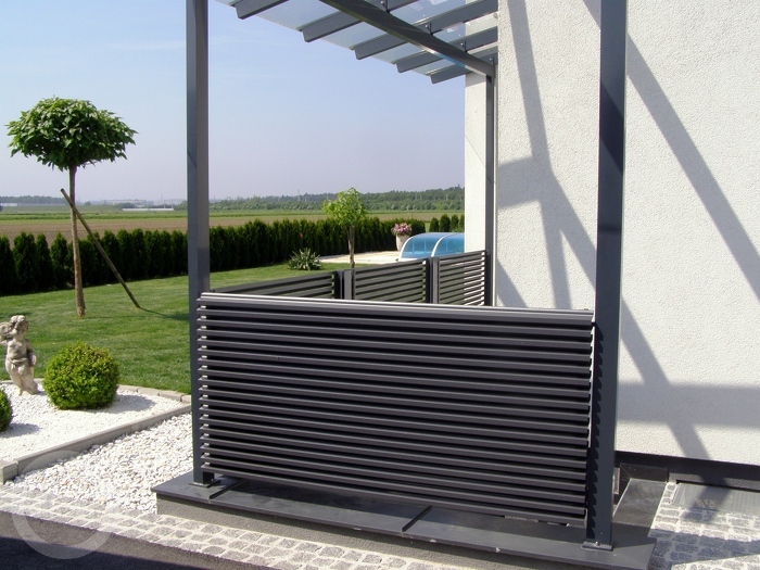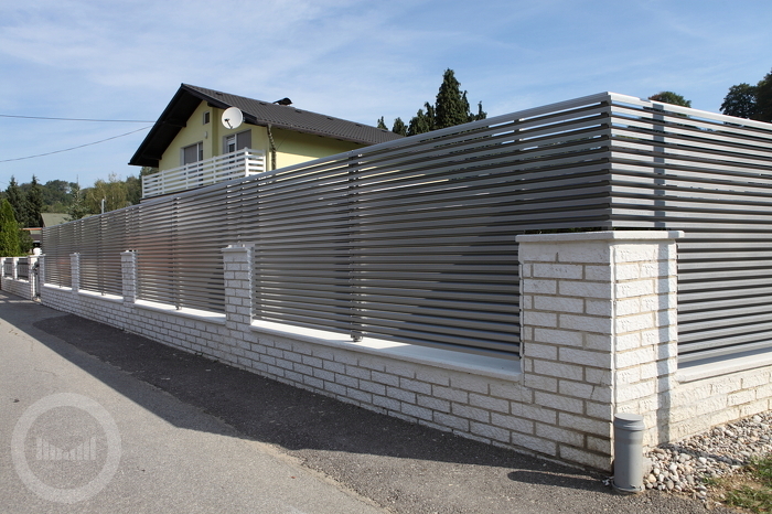 Ograja je sestavljena iz vodoravnih aluminijskih letev s profilom »Z« višine 55 mm, debeline 50 mm.