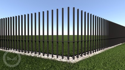 je neskončna ograja iz pravokotnih alu latnic, ki so povezane zgoraj.